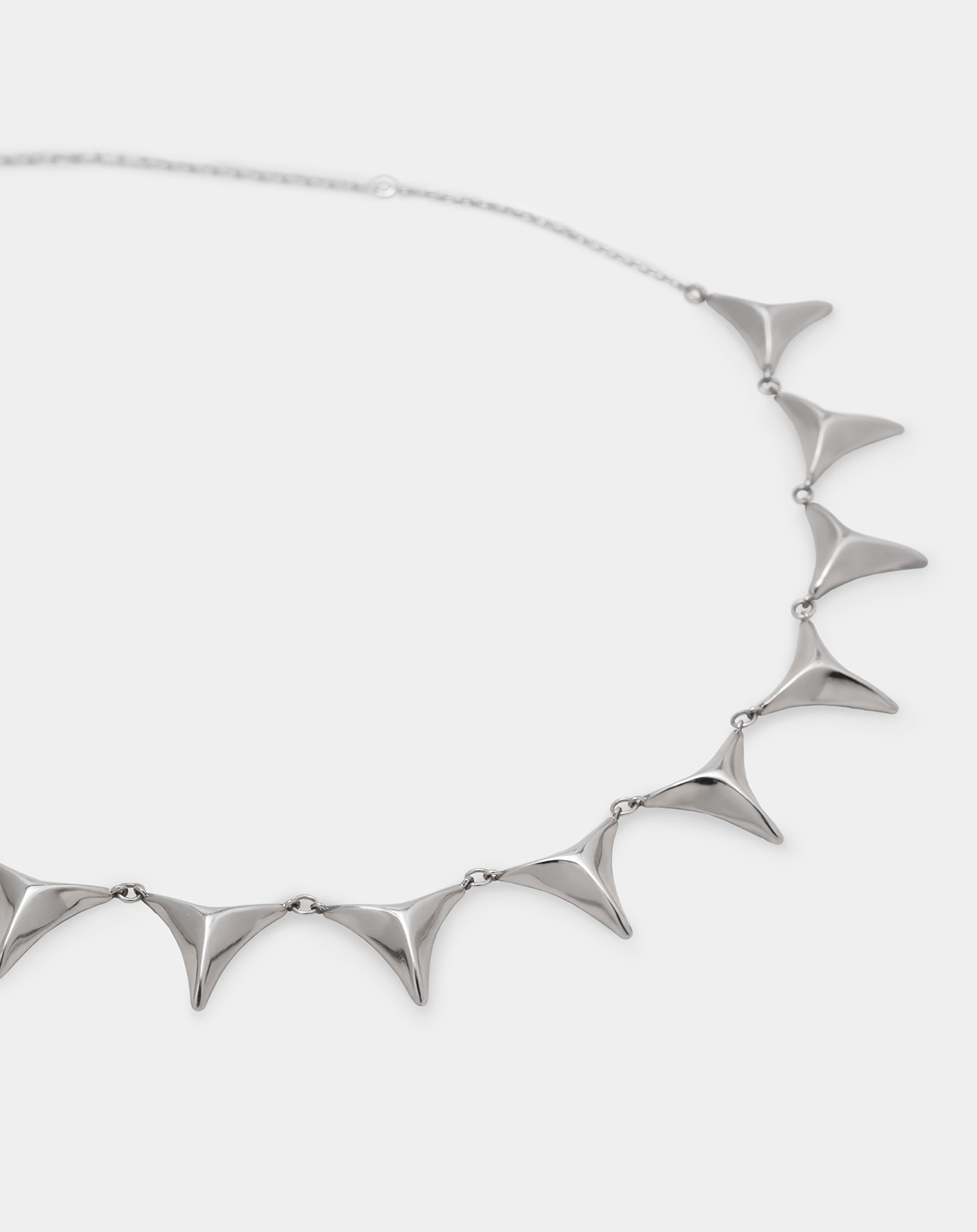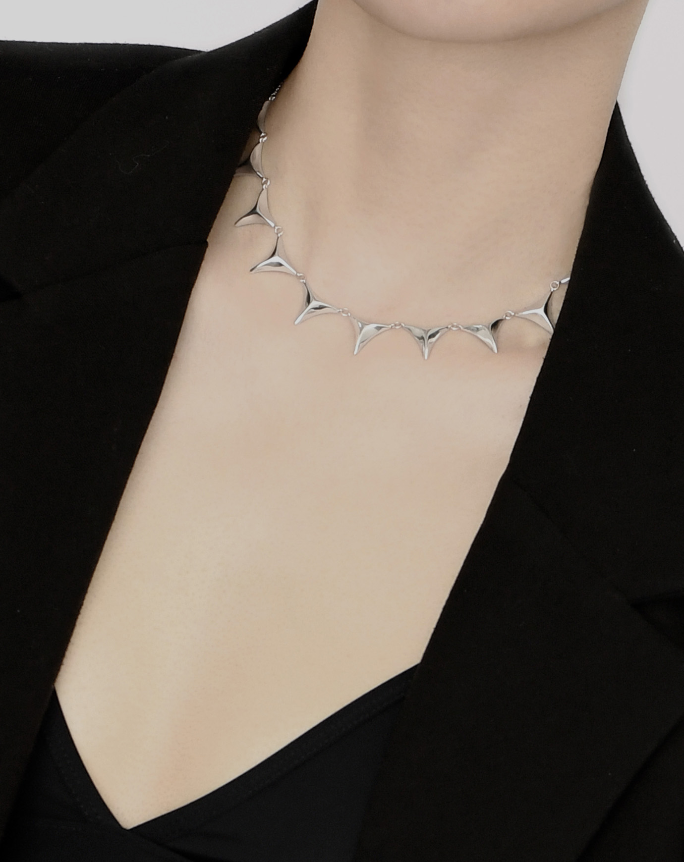 力強いスパイクモチーフが首元を囲む、エッジの効いたネックレス。