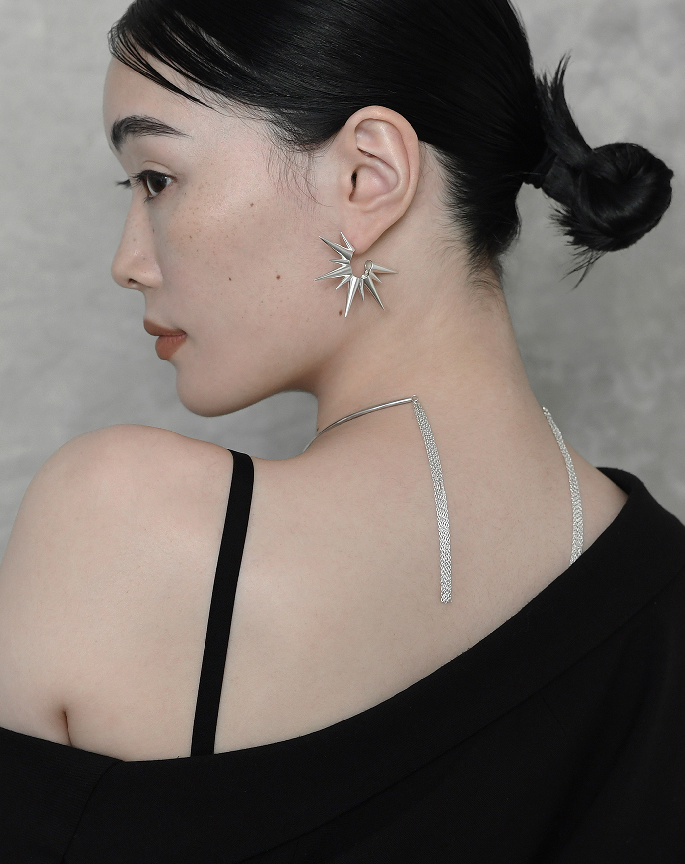 スパイクが連なったインパクトのあるピアス。