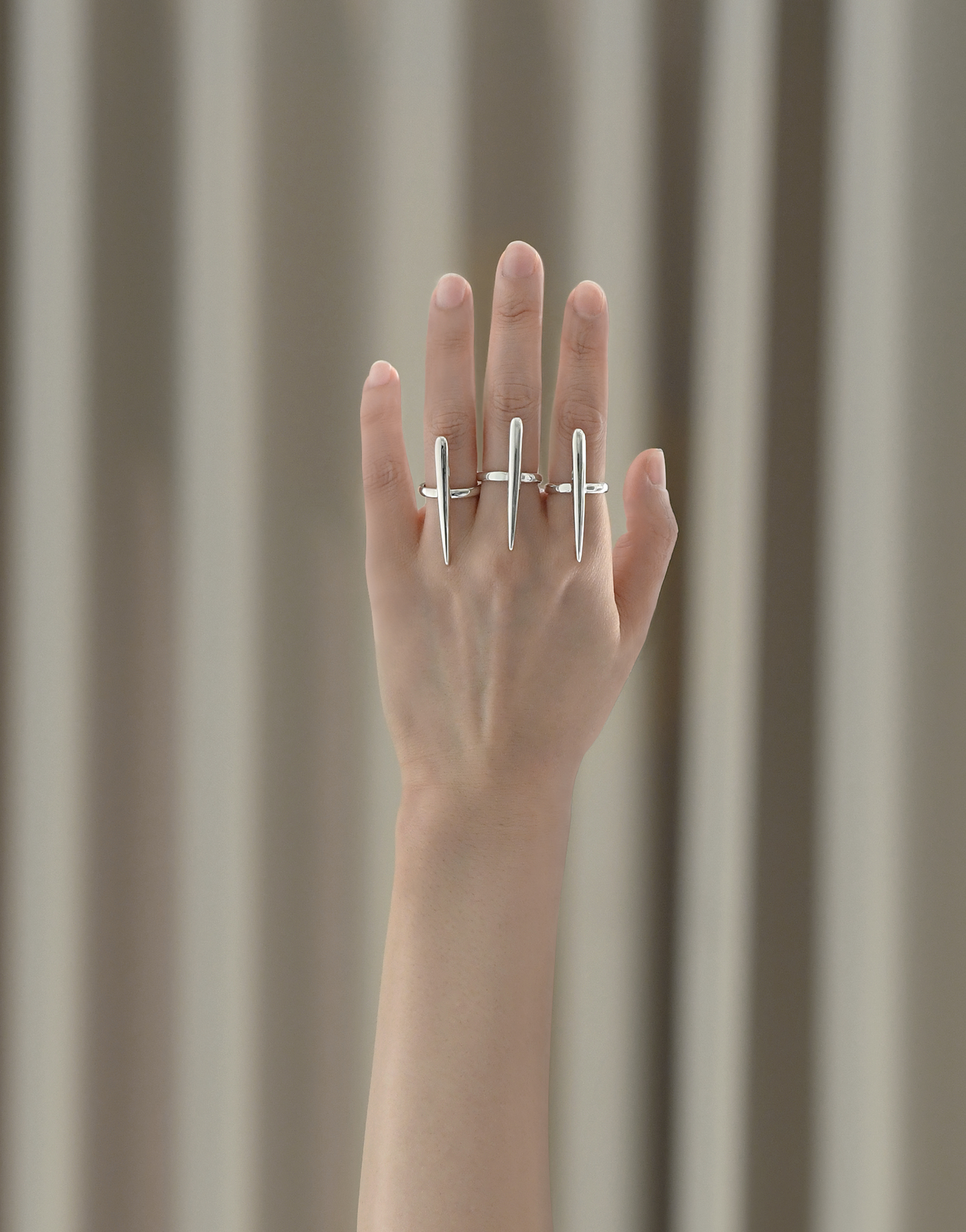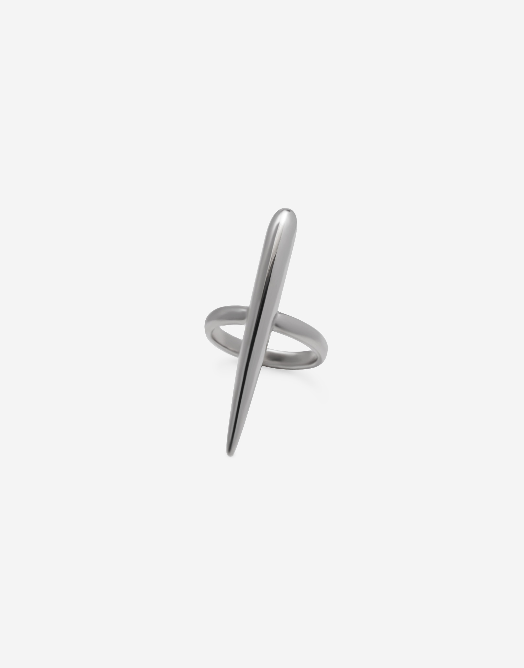 牙からインスピレーションを受けたリング。縦に伸びるデザインが指先をシャープに見せてくれます。