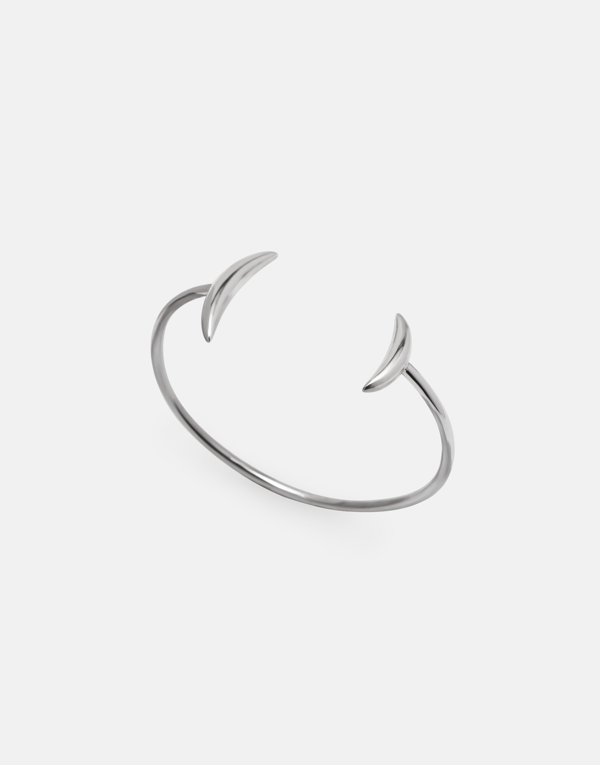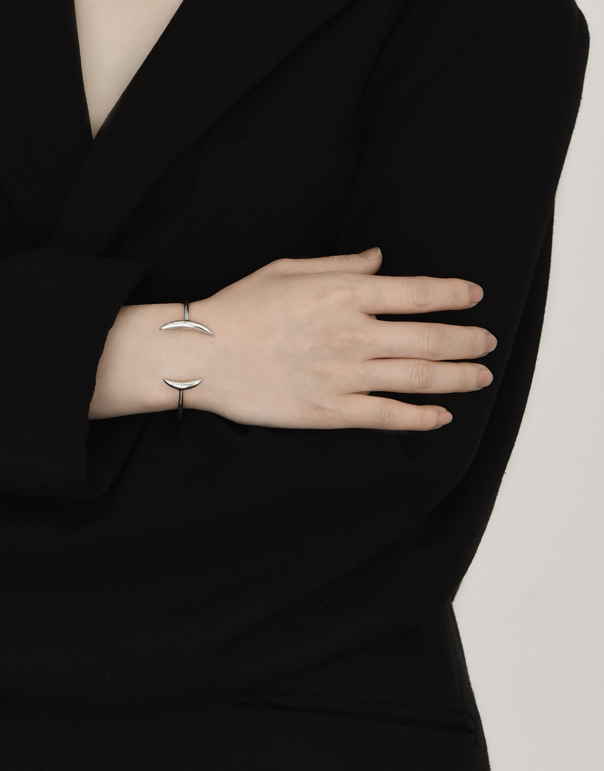 月をイメージしたバングル。軽やかさの中に強さがのぞくデザインに仕上げました。