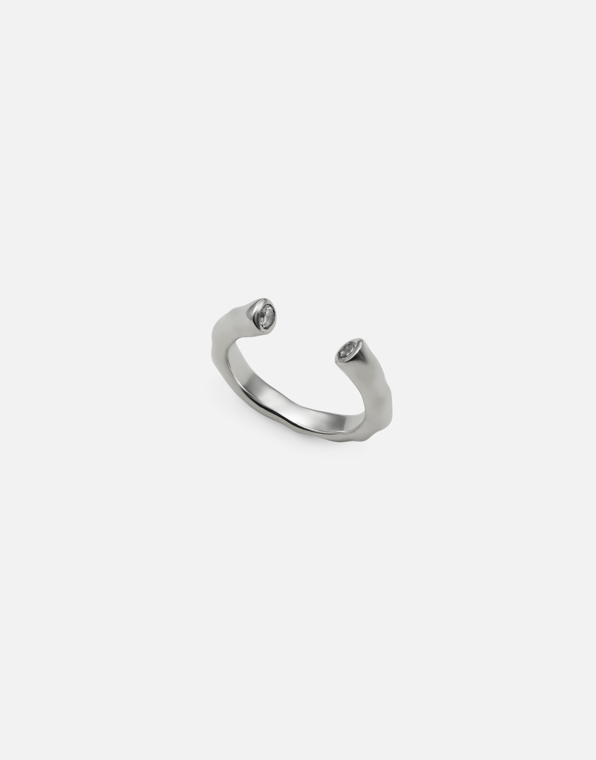 先端にキュービックジルコニアを埋めこんだ、柔らかくゆらめくリング。トップにデザインのあるリングやストレートリングとの重ね付けにもおすすめです。